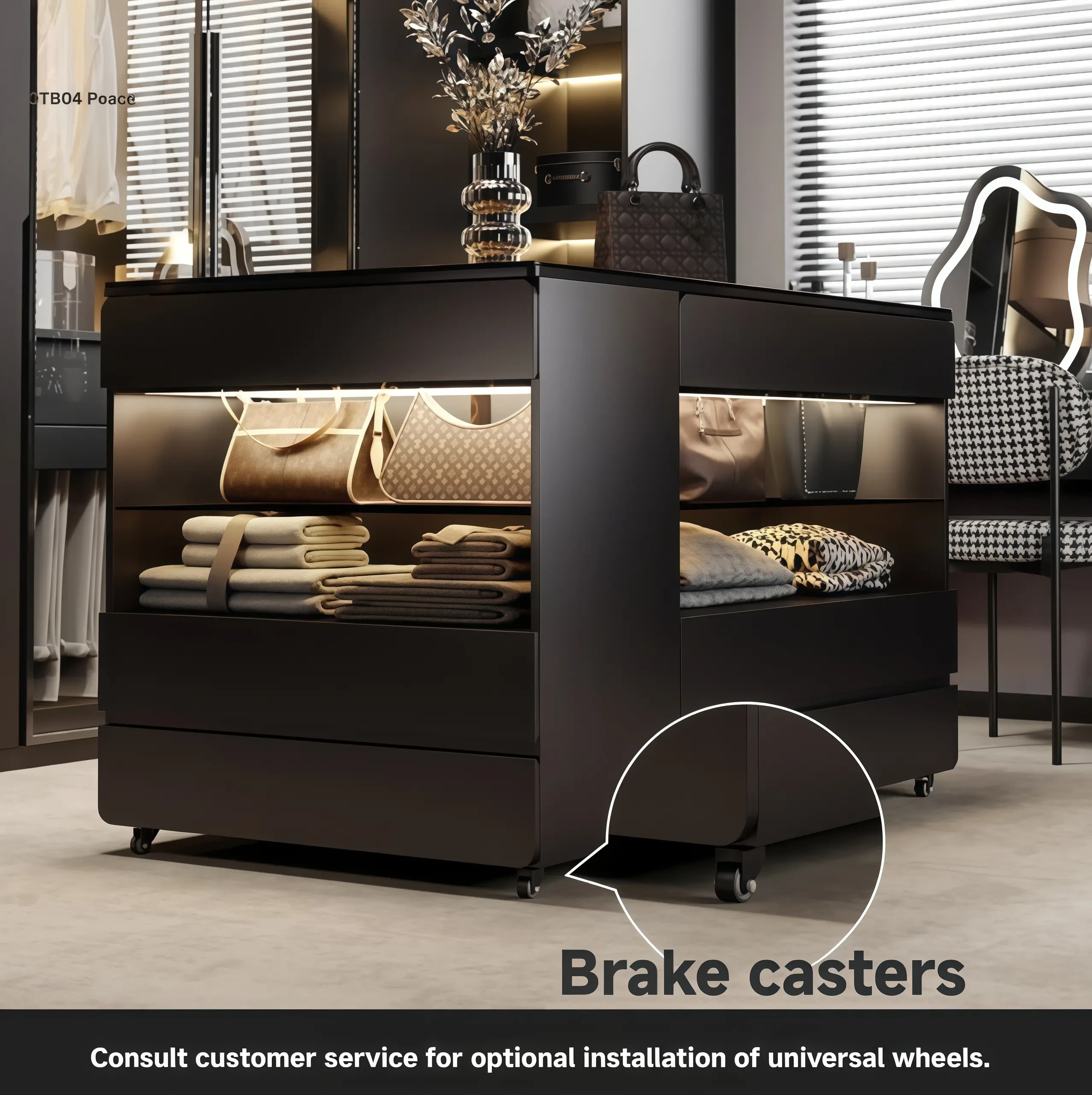 Black Closet Islands with Velvet Jewelry Display Boxes LED Large Storage Drawers