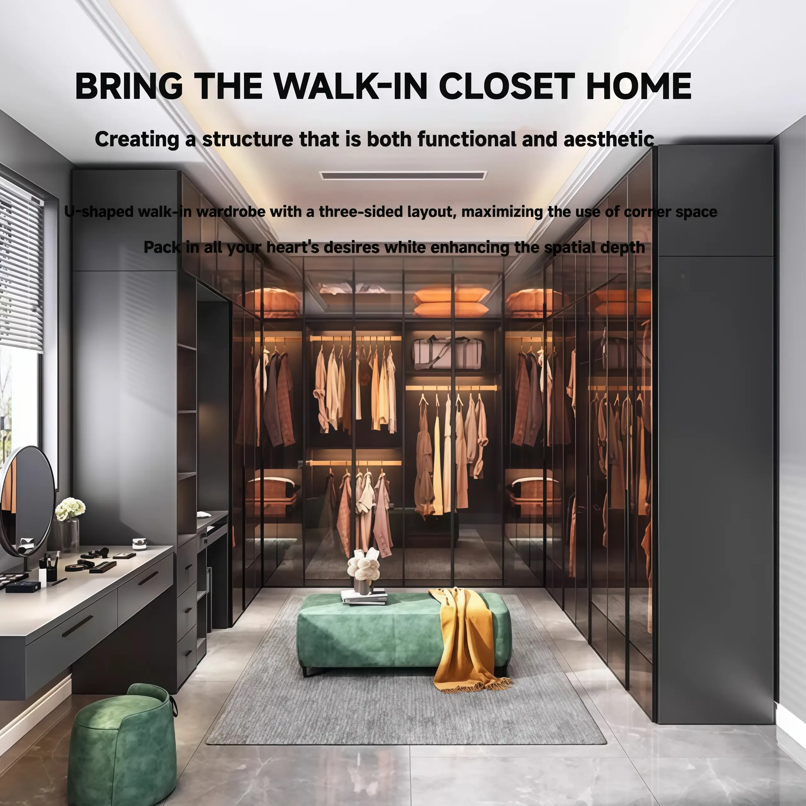 Modern Light Luxury Design: Combines a sophisticated light luxury aesthetic with contemporary style for a look that perfectly aligns with modern home decor. The combination of black framing, sleek gray tempered glass, and premium metallic accents elevates any bedroom or walk-in closet space