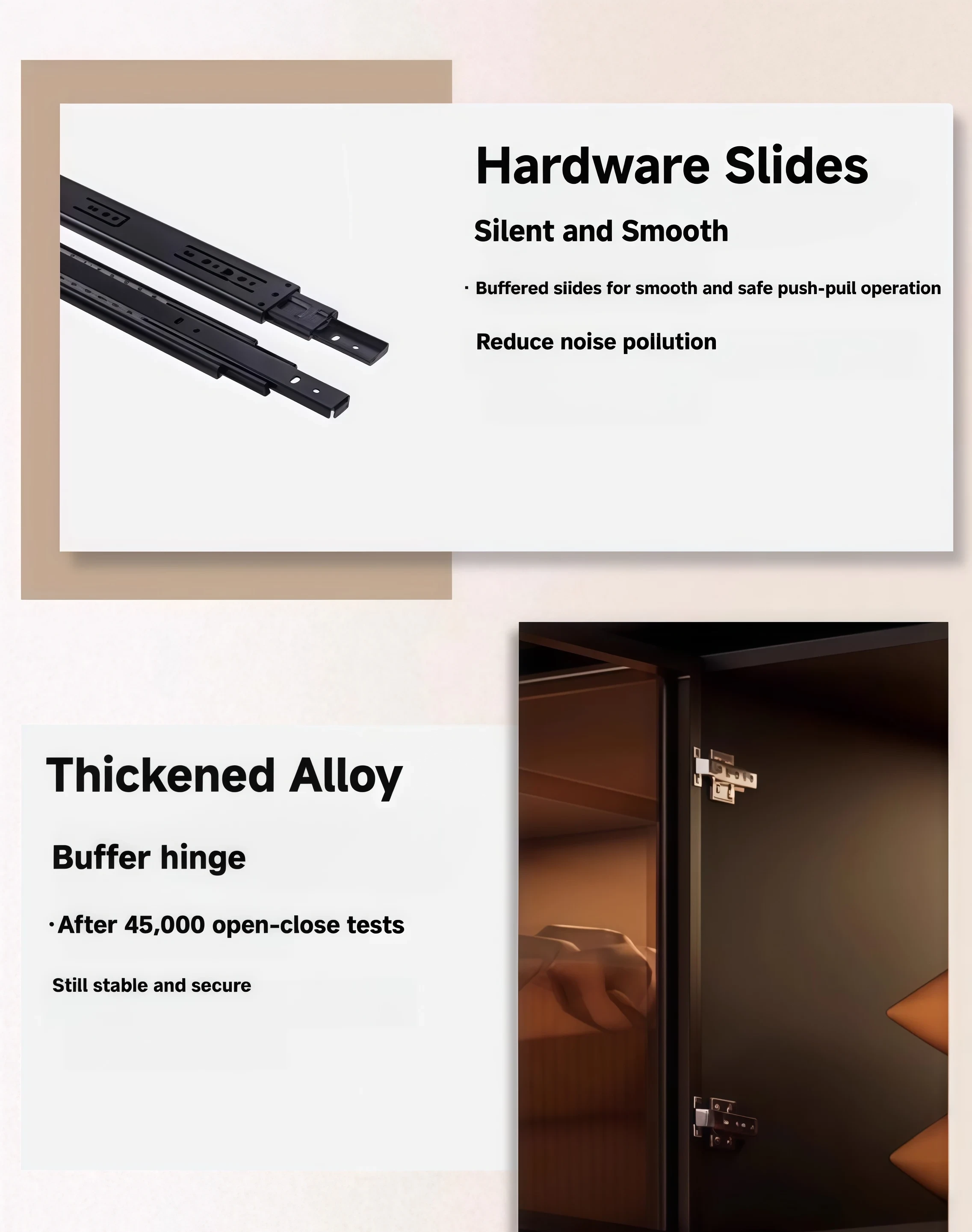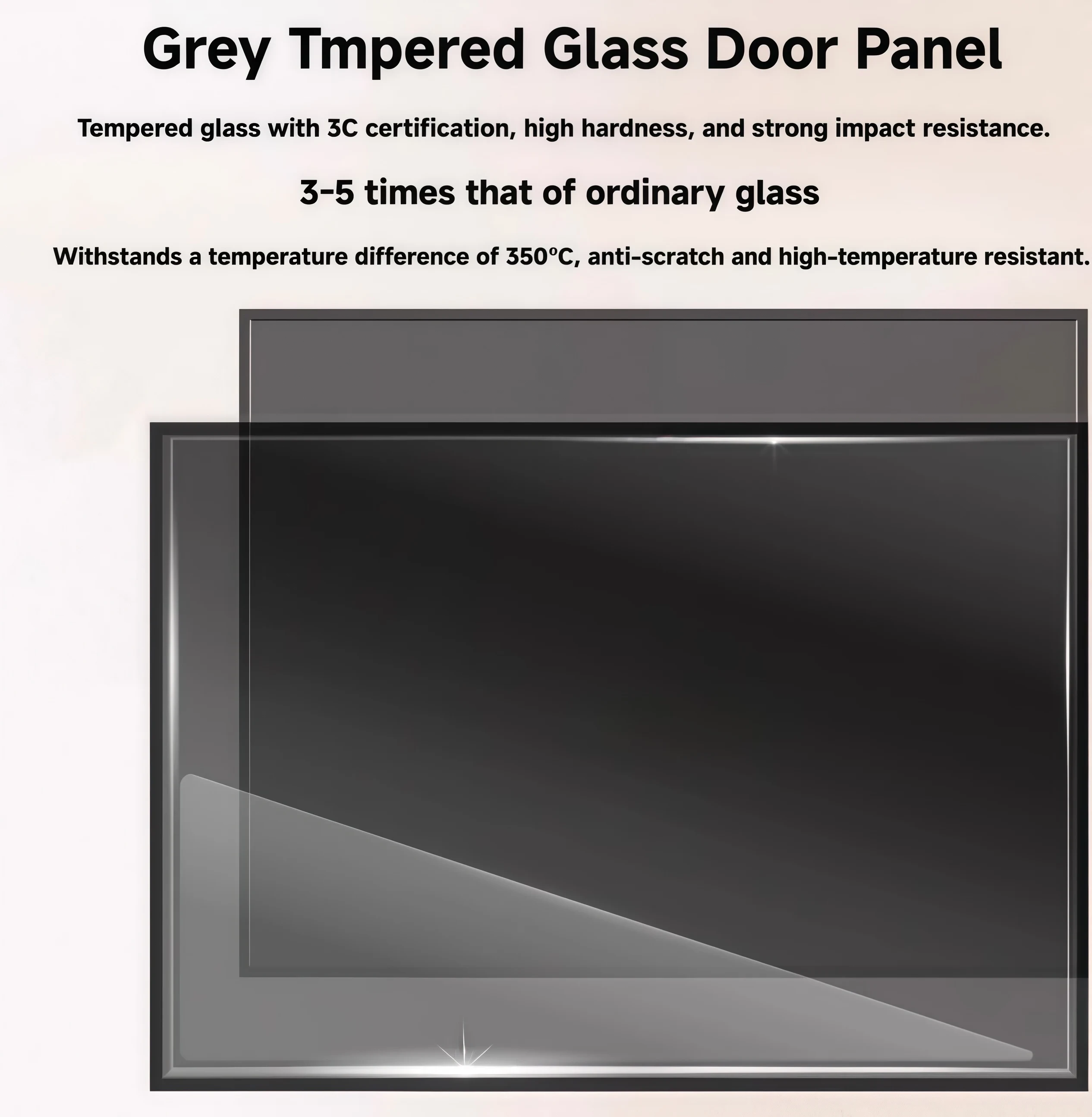Ultra-Durable & Premium Materials: Constructed with scratch-resistant, wear-resistant, and high-temperature-proof paint-free boards. Enhanced safety and strength come from the gray tempered glass panel (3-5 times stronger than regular glass) and a robust 18mm thickened aluminum alloy door frame, ensuring long-lasting durability and stability
