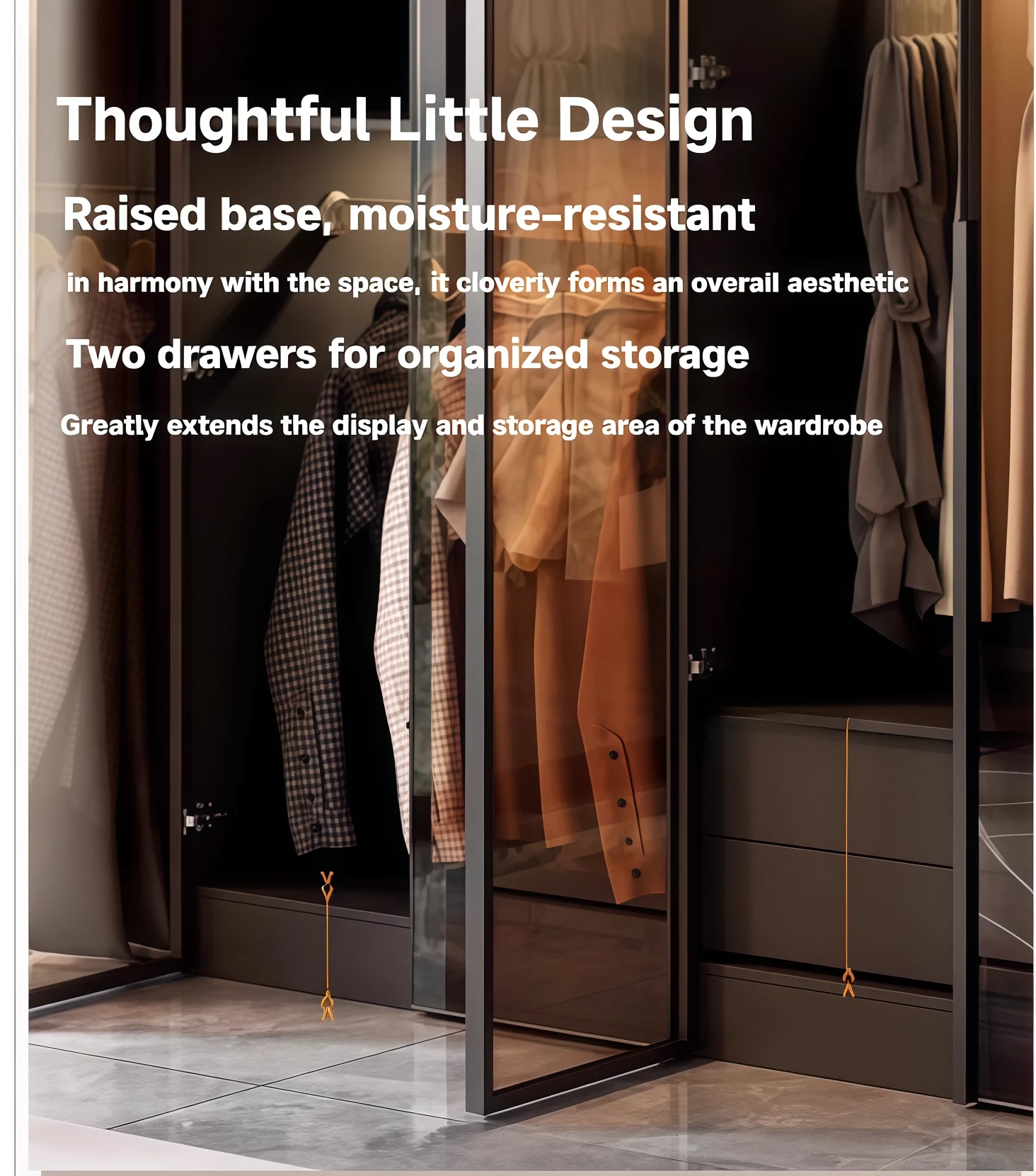 Silent & Smooth Operation: Utilizes high-quality silent guide rails for whisper-quiet, effortless opening and closing. Designed for versatile placement, this wardrobe fits seamlessly and functions perfectly in both bedroom and dedicated cloakroom settings