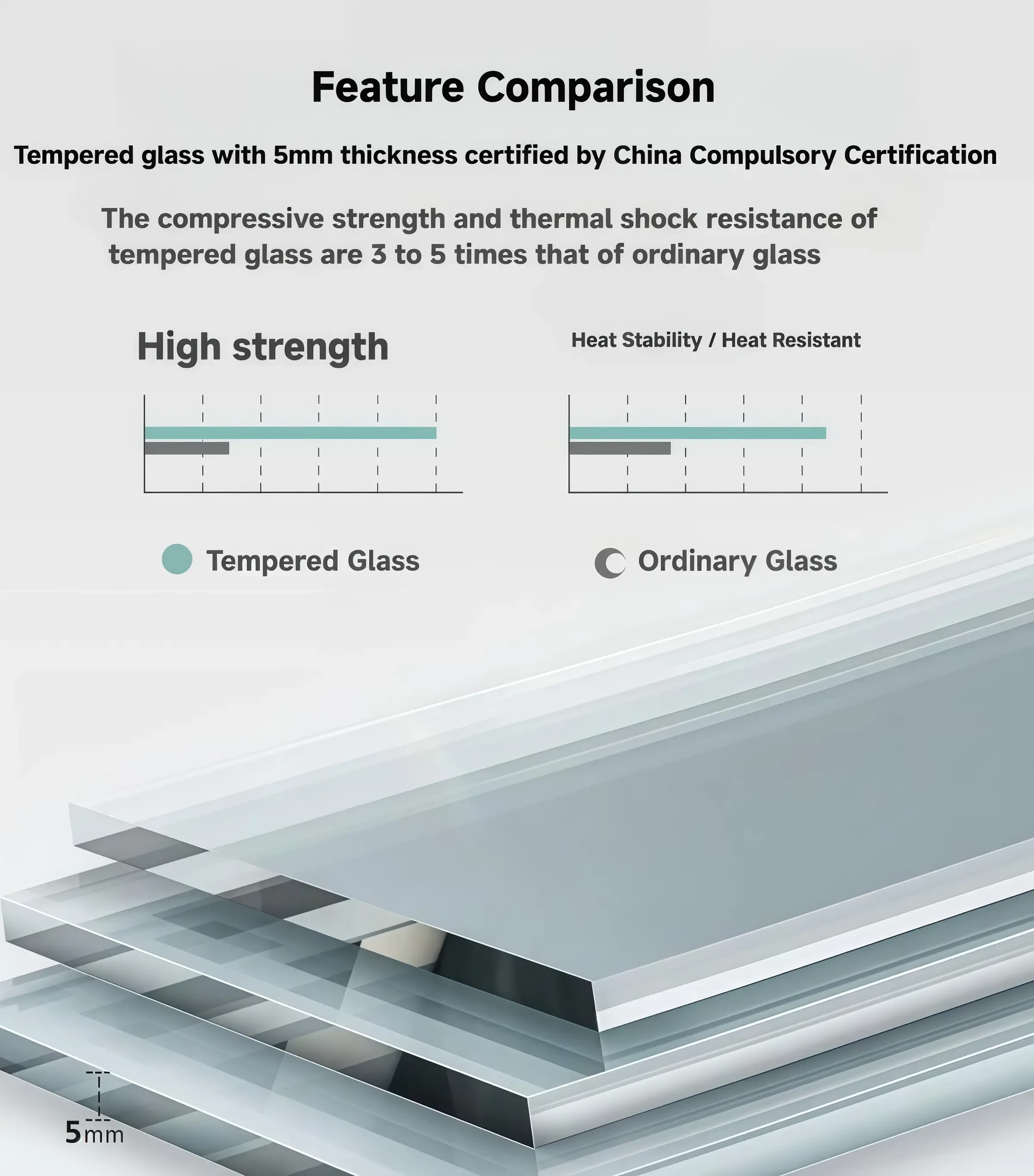 Safety Tempered Glass: The crystal-clear tempered glass door is 3-5 times stronger than ordinary glass, with excellent impact resistance while maintaining maintenance-free clarity, making your wardrobe collection elegant.