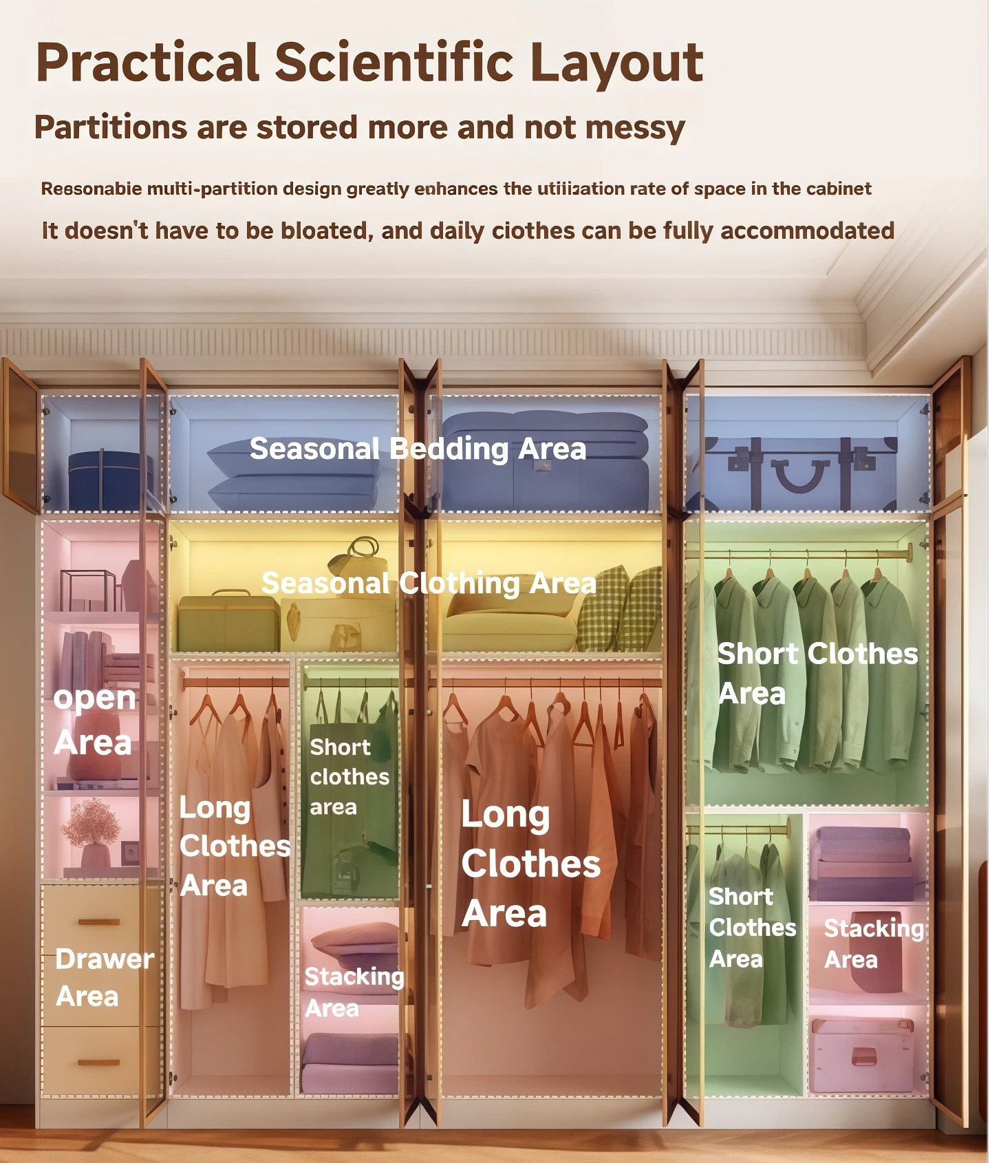 Strong, Load-Bearing Aluminum Alloy Frame:The frame is constructed of high-quality aluminum alloy, offering a stable, non-deformable structure and strong load-bearing capacity. It is suitable for a variety of settings, including closets and bedrooms, providing long-term, secure companionship for the family.