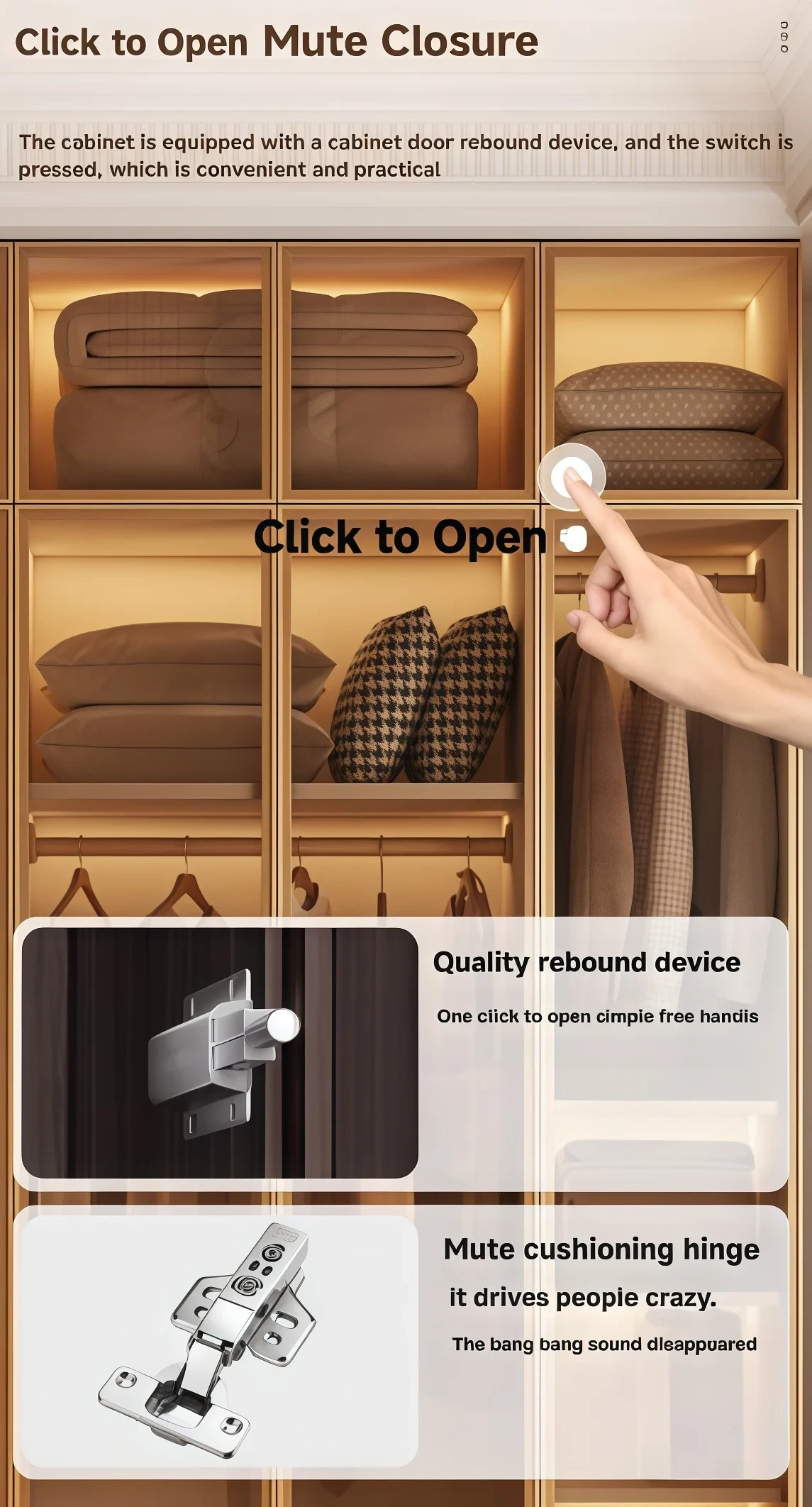 Smart Sensor LED Lighting System:A built-in motion-sensing LED light illuminates upon door opening, providing a soft, easy-to-reach experience while creating a comfortable atmosphere. It also features flexible installation and safe electrical operation.