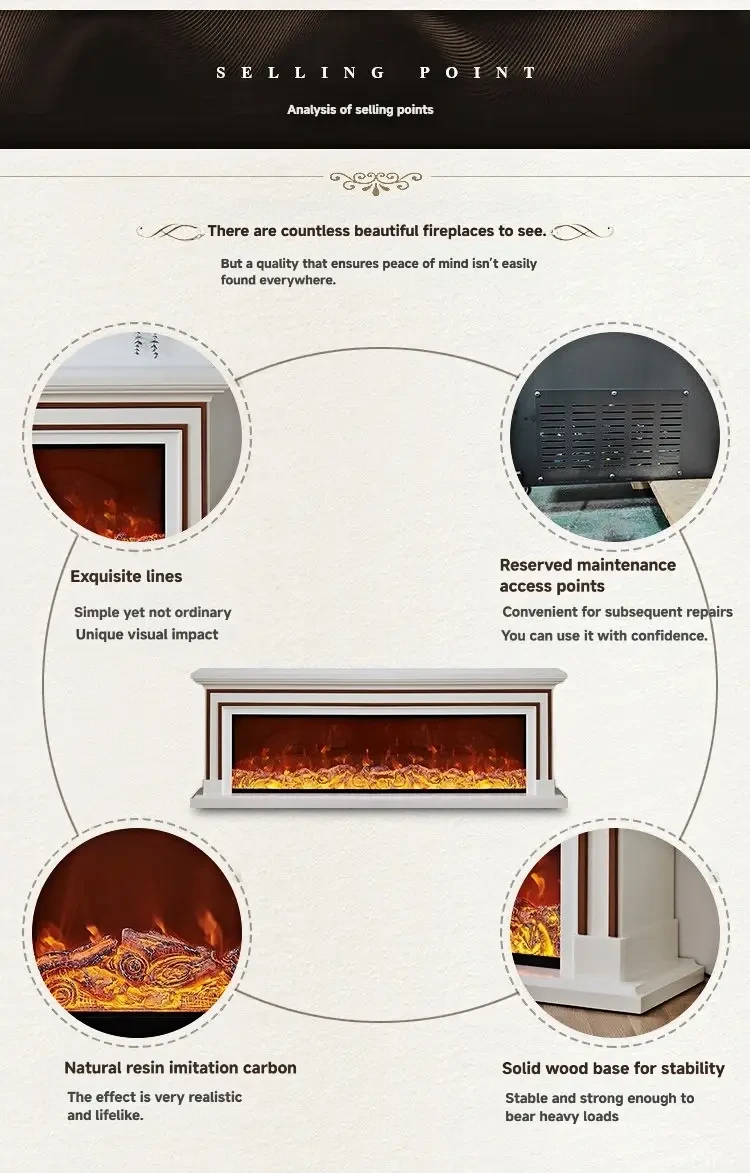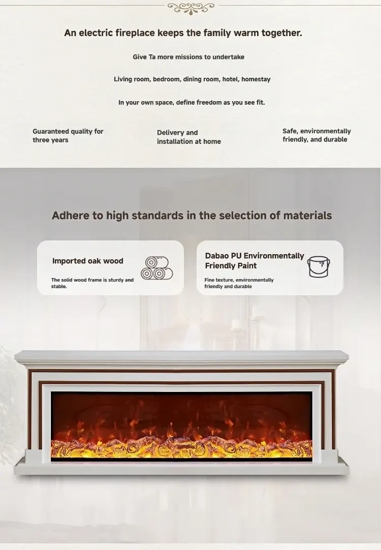 • Realistic Flames & Atmosphere Creation:Equipped with a decorative simulated flame system, it can create a warm atmosphere without the need for a real flame source. It supports brightness adjustment and dynamic effects, injecting a warm and quiet atmosphere into various modern living spaces.